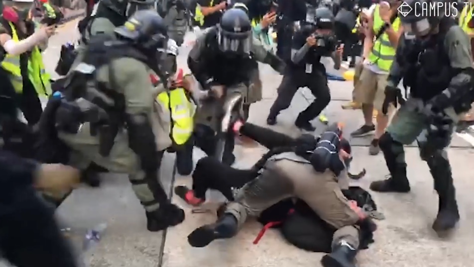 在2019年9月29日,警員在制服示威者後用警棍毆打已倒地的示威者,又嘗試用手掩蓋示威者臉及嘴部來阻止他說話。