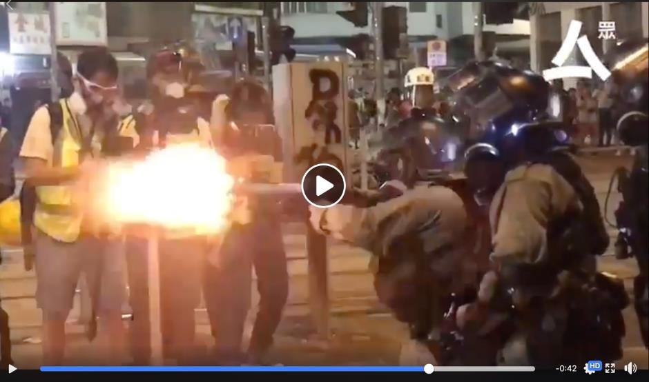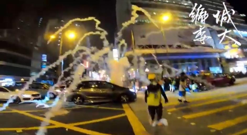 Tear bombs were shot continuously within a short period of time at the intersection of Nathan Road in Prince Edward, Kowloon, where there were full of journalists and manned vehicles on the street.