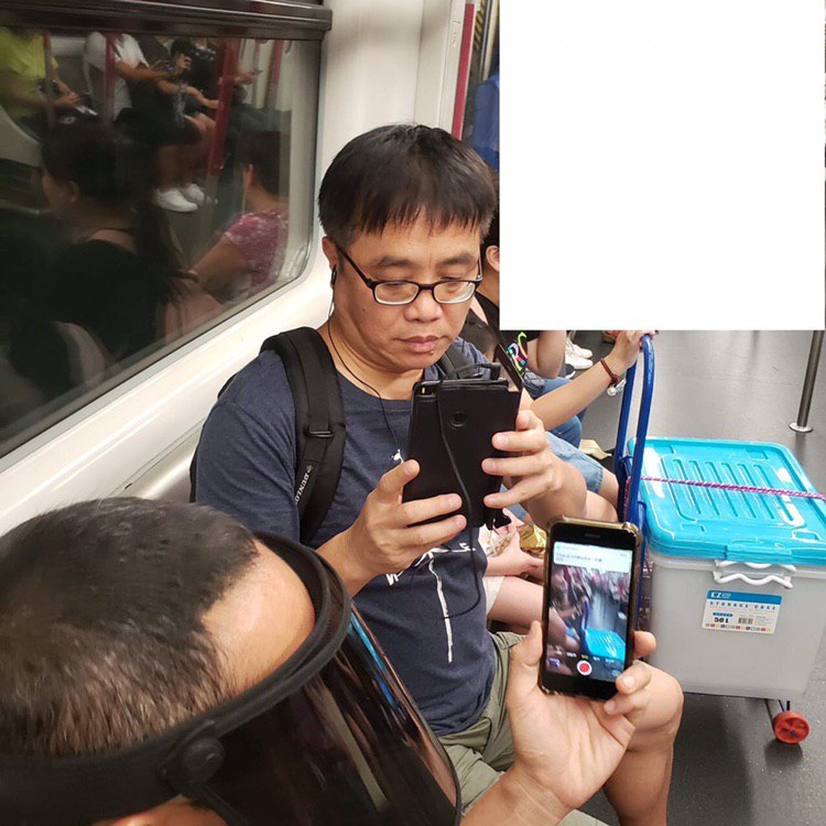 此人(群)是親中派的一名成員或支持者。此人曾經在沙田新城市廣場一帶,拍攝示威者之容貌並放上中國通訊軟件WeChat上,以作日後舉報之用。以下是更多相關的圖片: