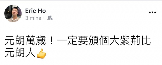 佢曾經係Facebook發表支持元朗恐佈份子嘅言論,高呼「元朗萬歲!」