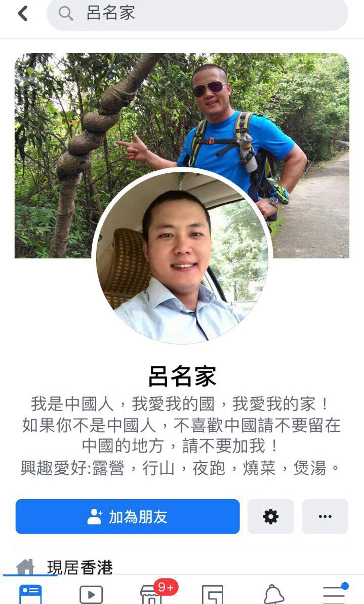 他曾經在Facebook發表親中言論,又有份轉載示威者之個人資料。