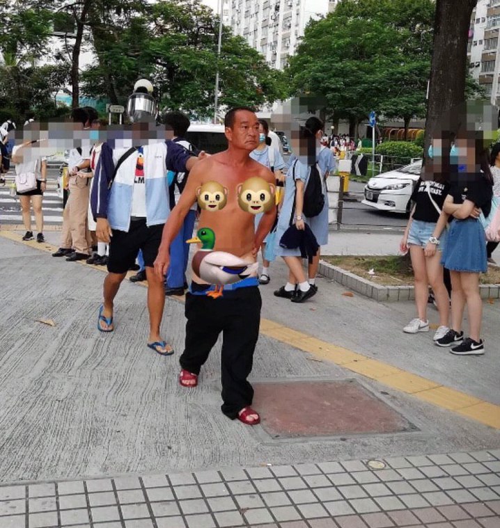 佢曾經係2019年9月對築起人鏈嘅學生露出下體。