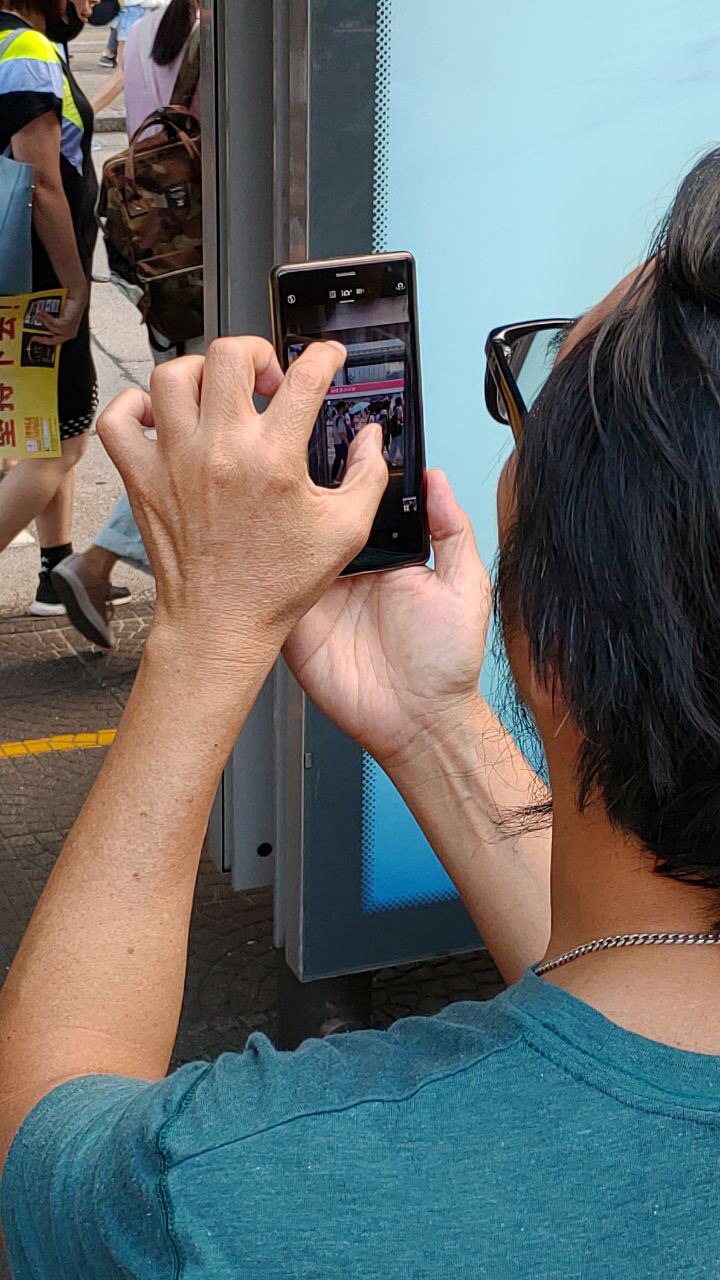 佢曾經係中環皇后像廣場,拍攝示威者容貌,意圖作舉報之用。