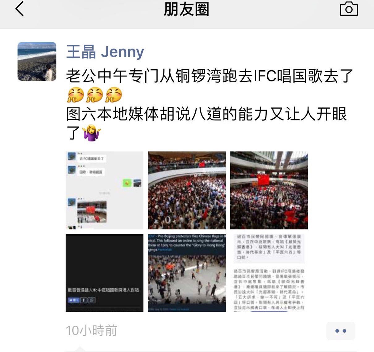 佢曾經係2019年9月12日參與IFC愛中國活動,以下係佢係WeChat發表嘅相關言論: