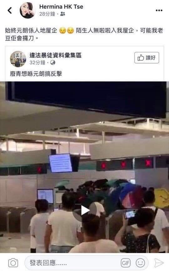 佢曾經係Facebook發表支持元朗恐佈份子嘅言論,如下圖: