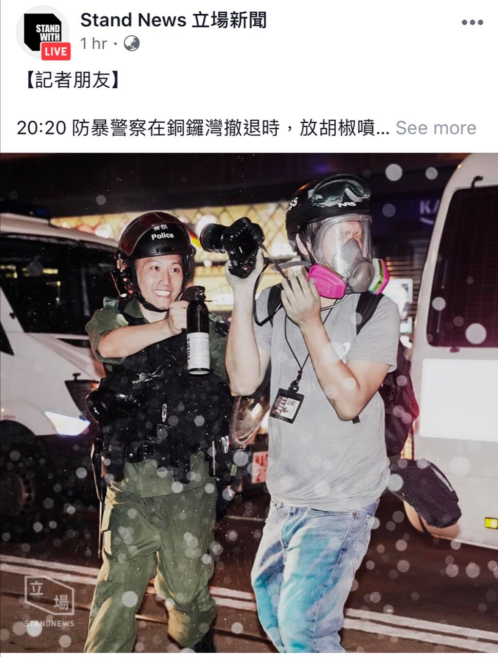 佢曾經於2019年11月,係銅鑼灣示威現場向記者當面噴灑胡椒噴霧,並面露笑容。以下係當日事件圖片: