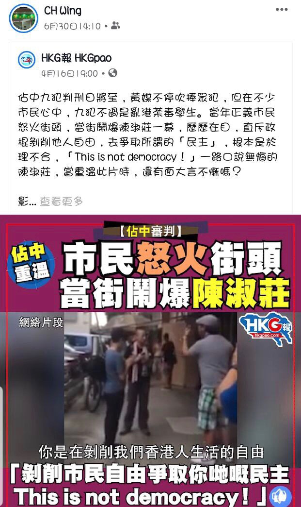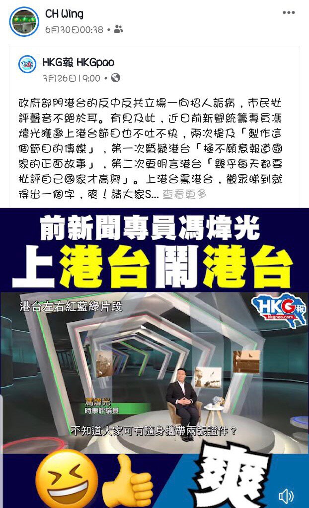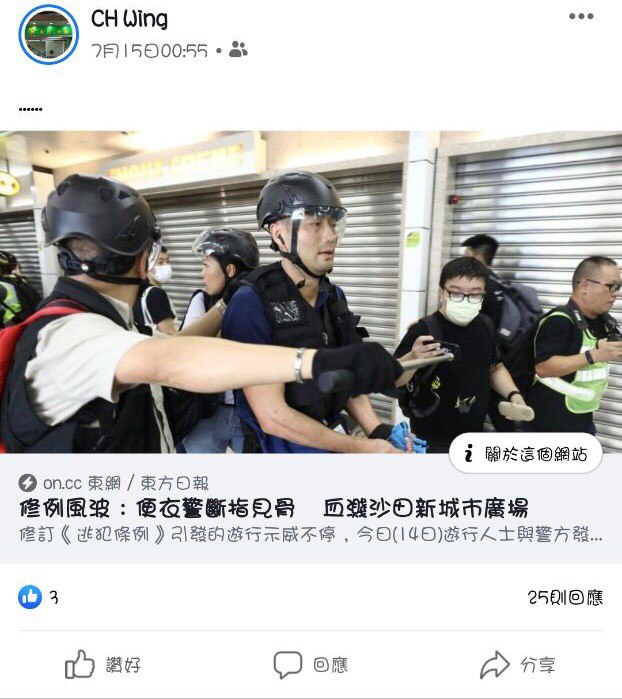 佢曾經係Facebook發表支持香港警察嘅言論,詳見下圖: