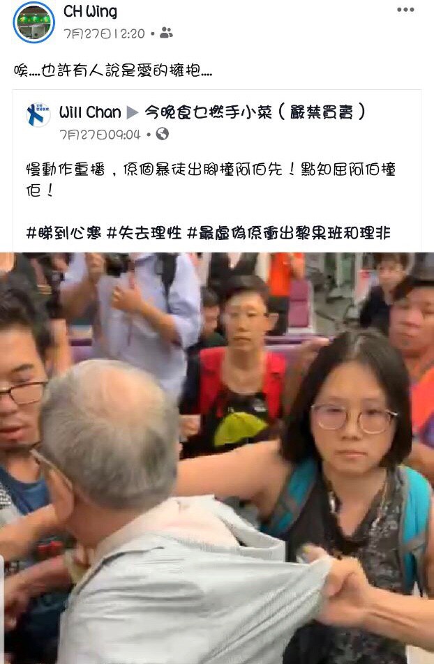 鍾向榮係一名撐警藍絲,支持香港警察濫權濫捕並為此歡呼。