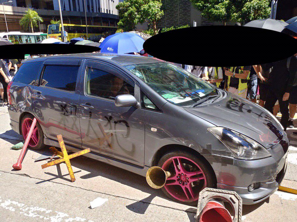 他曾經在元朗YOHO Mall,兩次開車撞示威者,以下為現場圖片:
