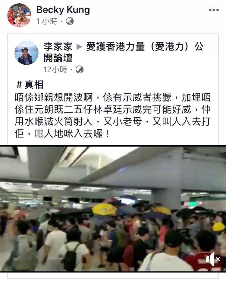 佢曾經轉發支持元朗恐佈份子嘅言論,如下圖: