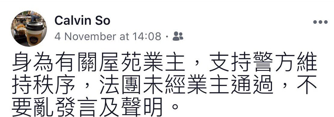 佢曾經係Facebook發表支持香港警察嘅言論,詳見下圖: