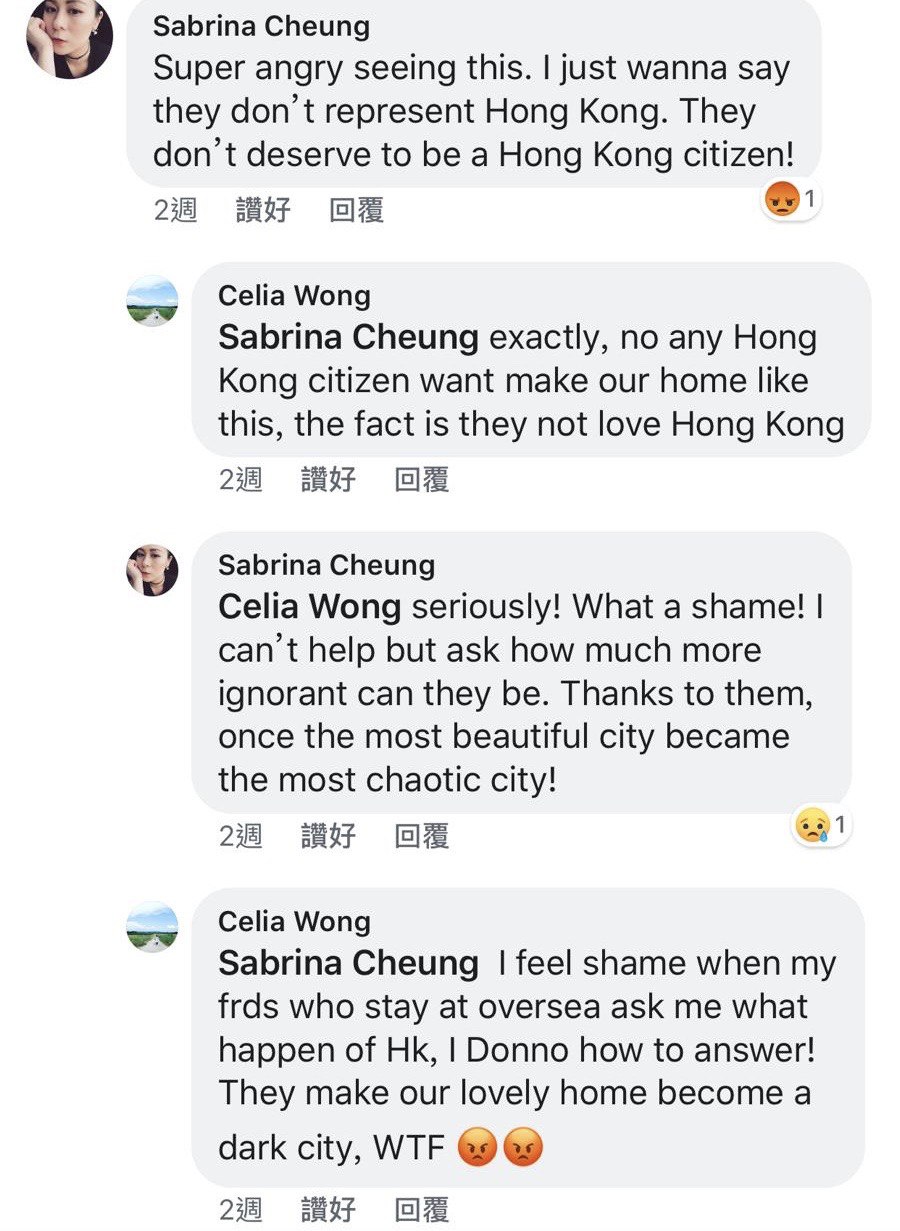 佢係Facebook不停發表辱罵義士、不停撐警嘅言論,得知示威者受傷時還不停叫好。