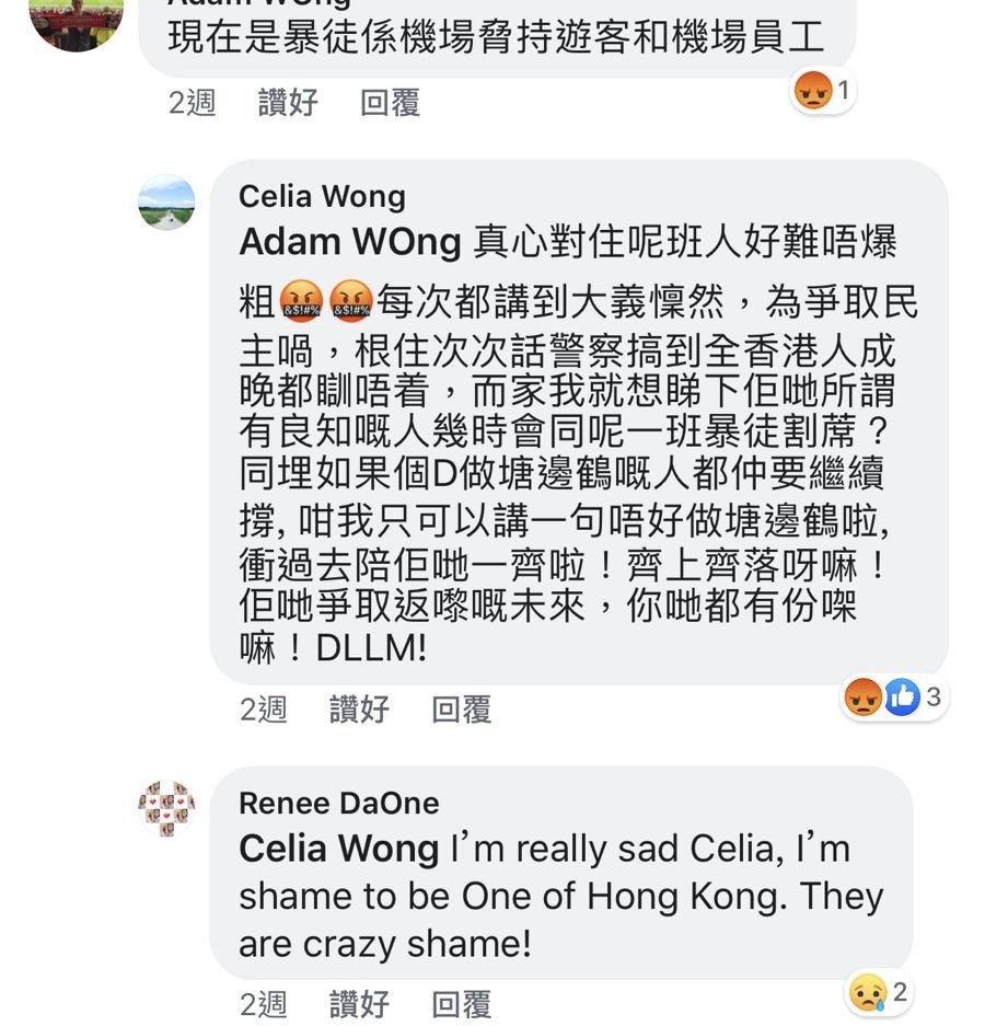Celia Wong係一名撐警藍絲,支持香港警察虐待示威者。