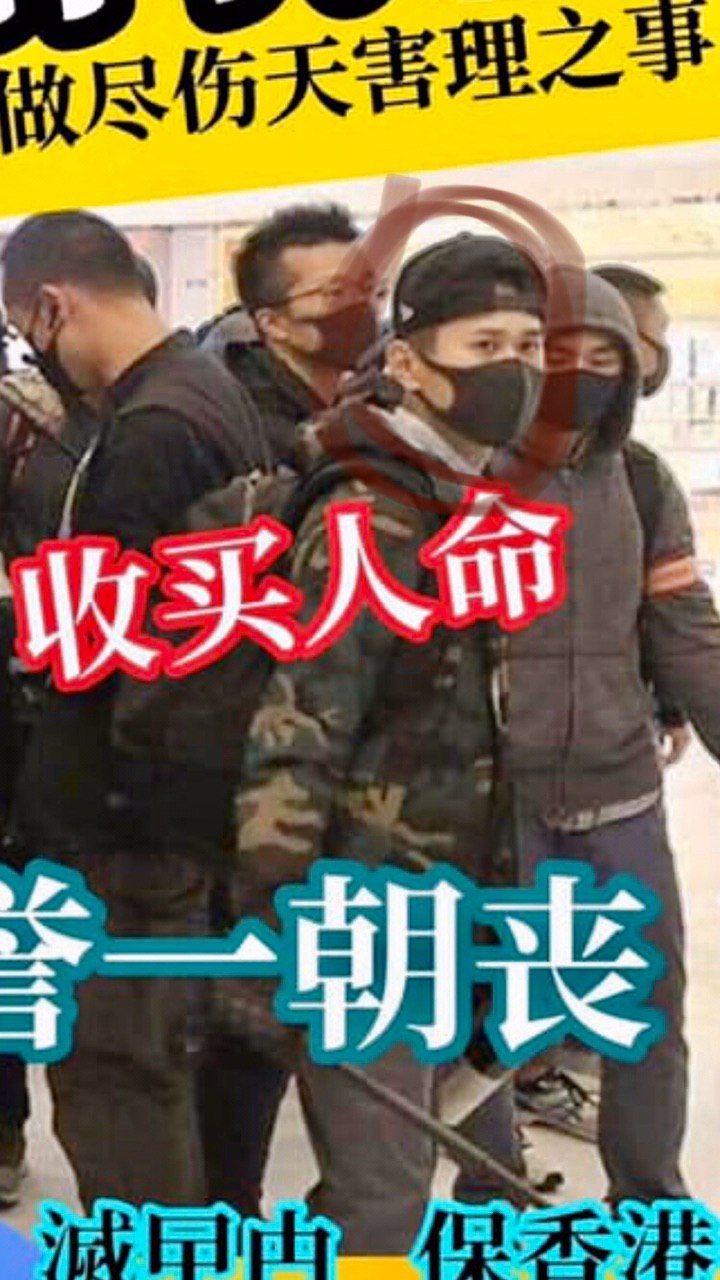 以下係佢身穿示威者裝束,出現喺示威現場嘅圖片: