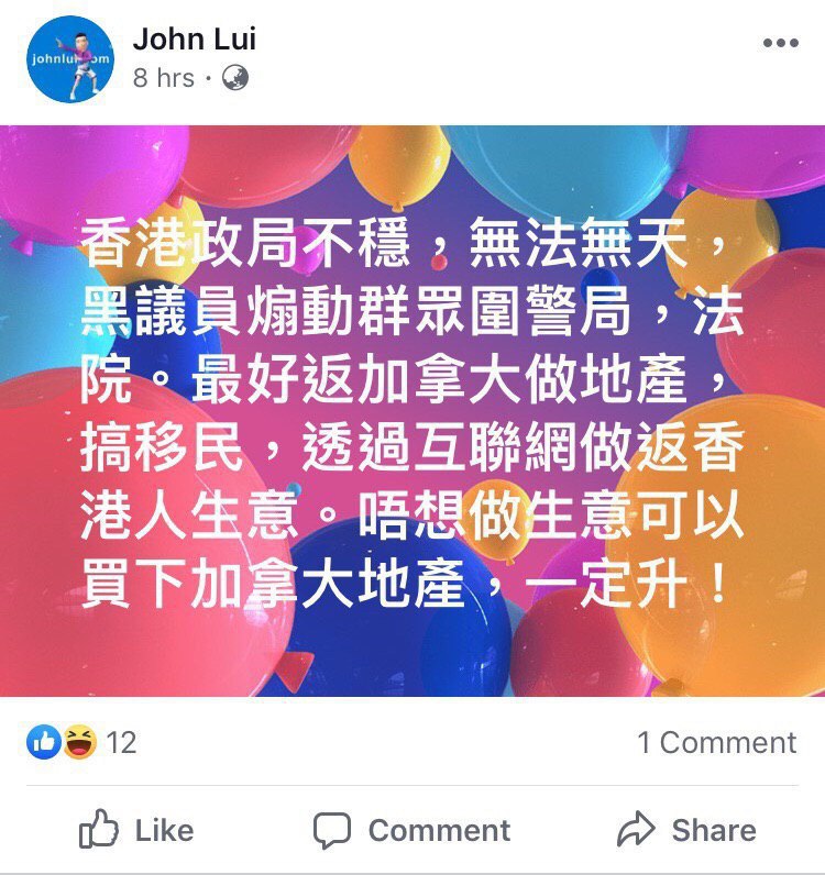 Calvin So係一名撐警藍絲,支持香港警察濫權濫捕並為此歡呼。佢曾經係Facebook發表支持香港警察嘅言論,詳見下圖: