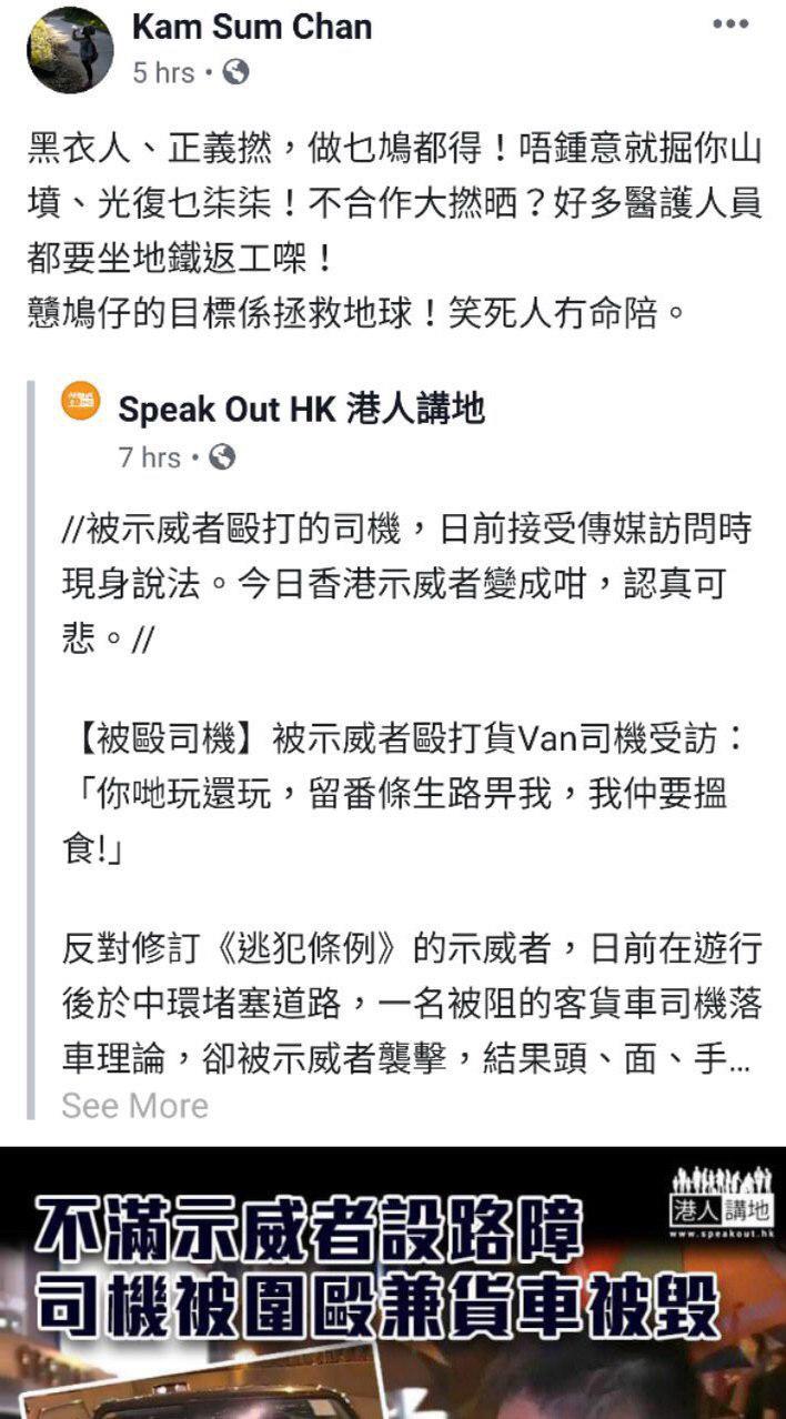 任婉華係一名撐警藍絲,支持香港警察使用暴力對待市民。佢曾經係多個社交網站,使用分身帳號舉報同情示威者嘅入境同事,想搞到人地失業。