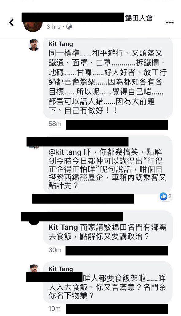 佢曾經係Facebook發表支持元朗恐佈分子嘅言論。