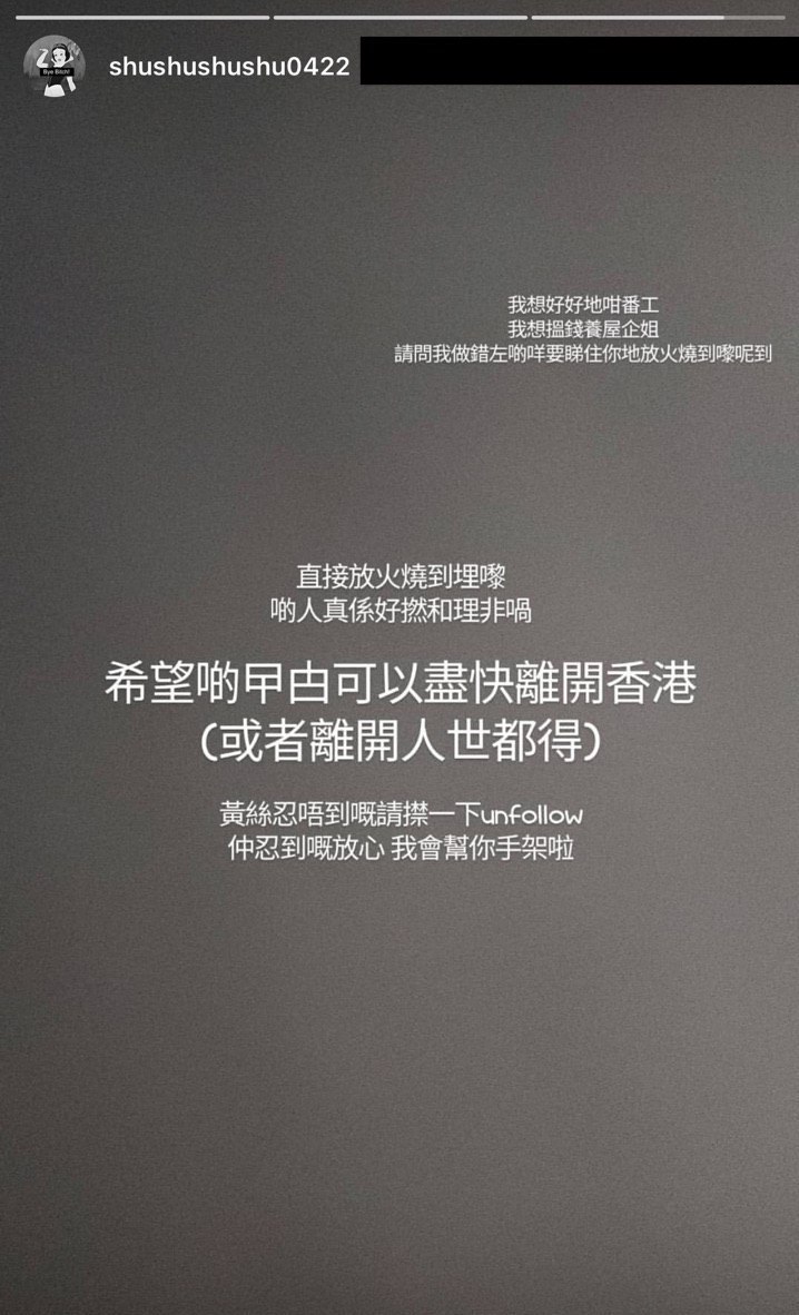 Lee Ka Chun Jinnie 係一名撐警藍絲,支持香港警察虐待示威者。