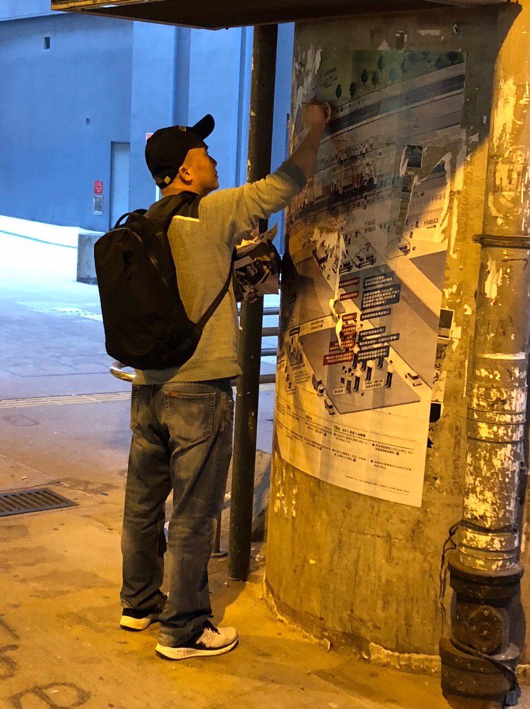 佢曾經係元朗西鐵站撕毀抗爭相關宣傳品,詳見下圖: