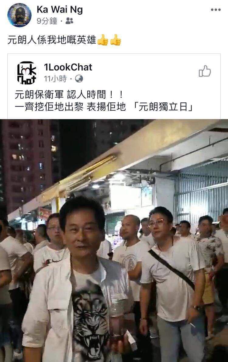 佢曾經係Facebook指「元朗人係我哋嘅英雄」。