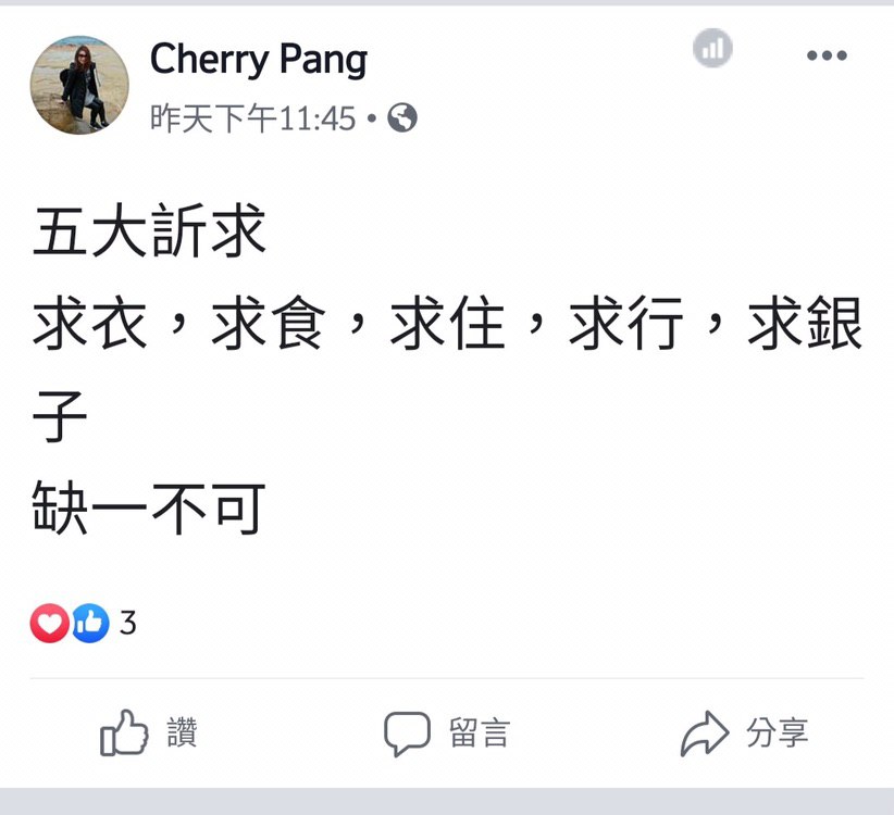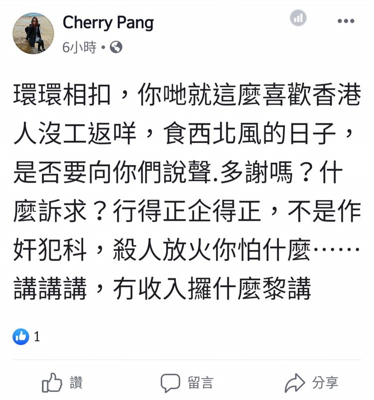 佢多次係Facebook發表親中及撐警暴言論。