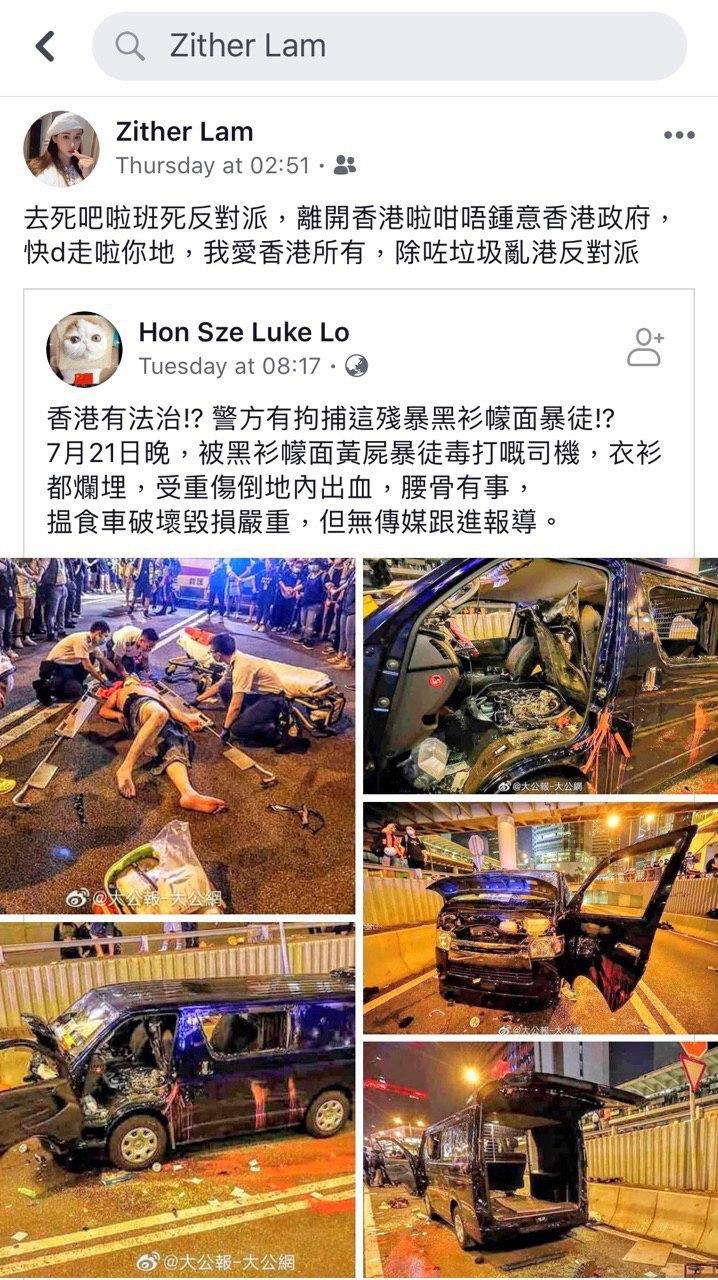 佢曾經多次係Facebook發表支持親中撐警嘅言論,詳見下列圖片。