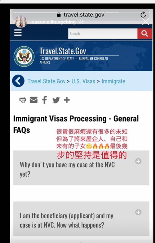 Leung Kim Hoi老婆Instagram:queenielihungching,亦係網民搵出出佢老公打算同佢一齊移民嘅途徑。