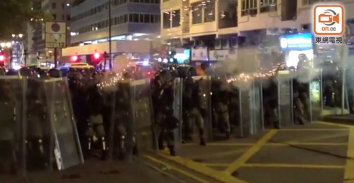 片中顯示當時馬路上只有少數記者,但警員疑似在沒有舉旗下、以水平方向的角度發射催淚彈。警方亦以平射方式發射數粒催淚彈。這涉嫌違反《公安條例》第17條中,表明警務人員在阻止公眾聚集舉行,或停止或解散公眾聚集時,只可以使用「合理所需的武力」