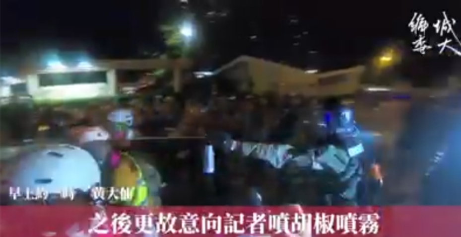 In Mongkok, Kowloon, Police attacked journalist by pepper spray. Ted Hui Chi-fung the lawmaker requested the police concerned to show his number or identity however in vain. Hong Kong Police also supp ...