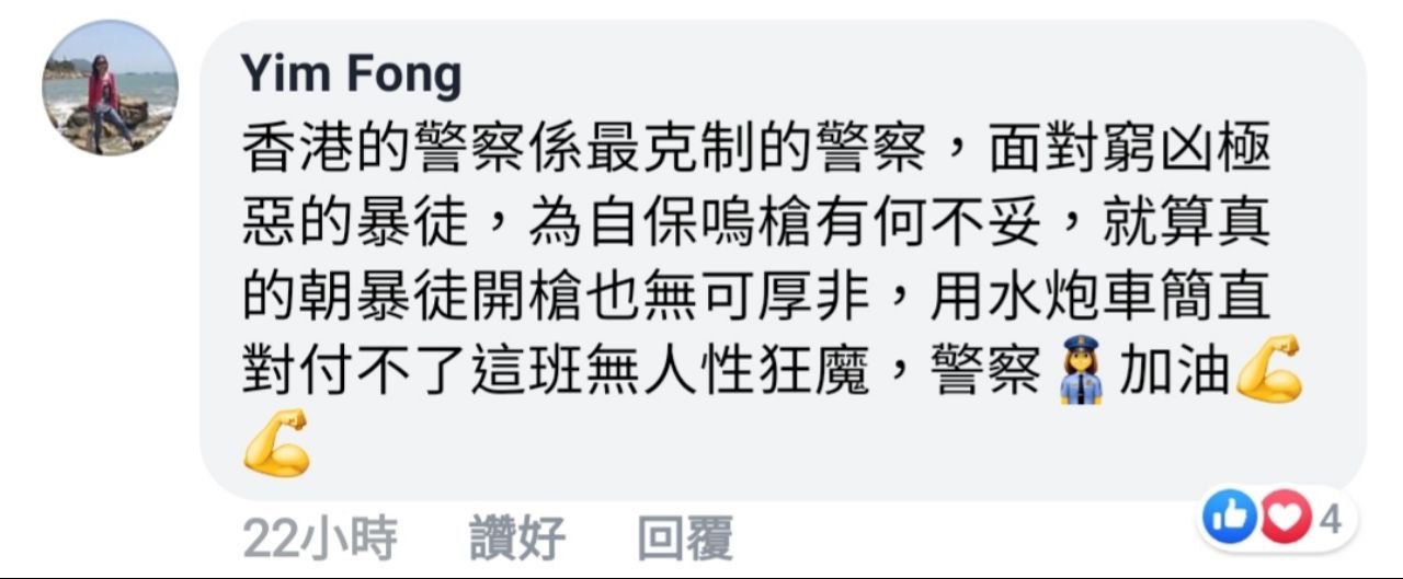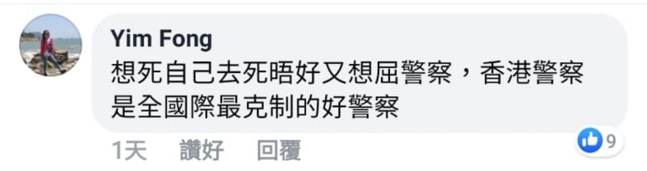 佢曾經係Facebook發表撐警暴言論,親身去撐警集會,而且係返工時間鬧示威者係曱甴。