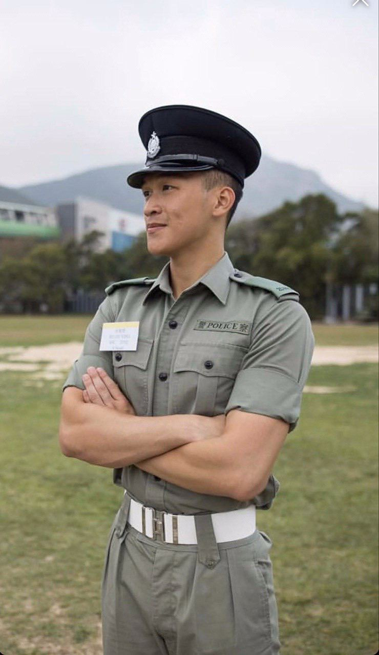 以下係佢身穿香港警察服裝嘅圖片: