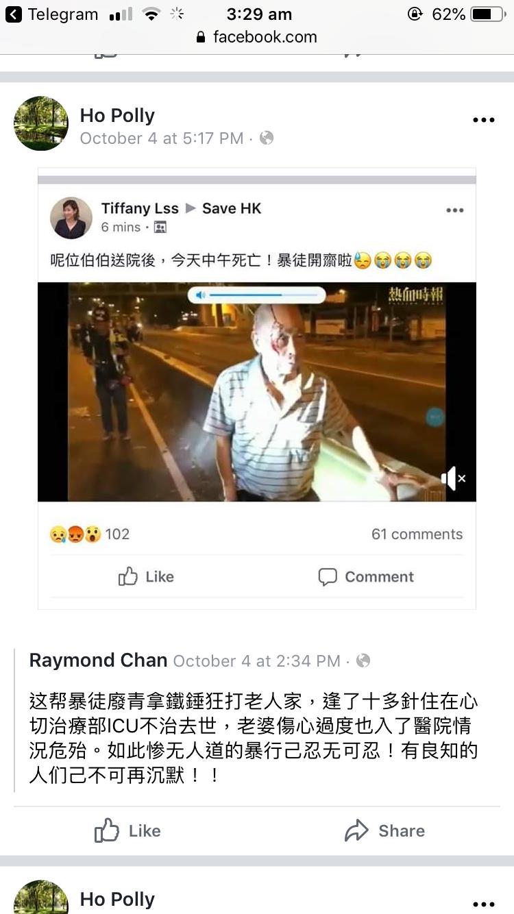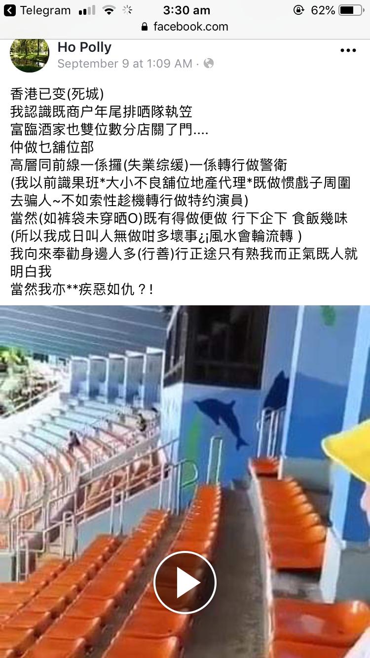 佢疑似係地鐵北角站拍攝示威者或打人,然後被大批青年人包圍。佢亦係Facebook多次發表親中及撐警言論。