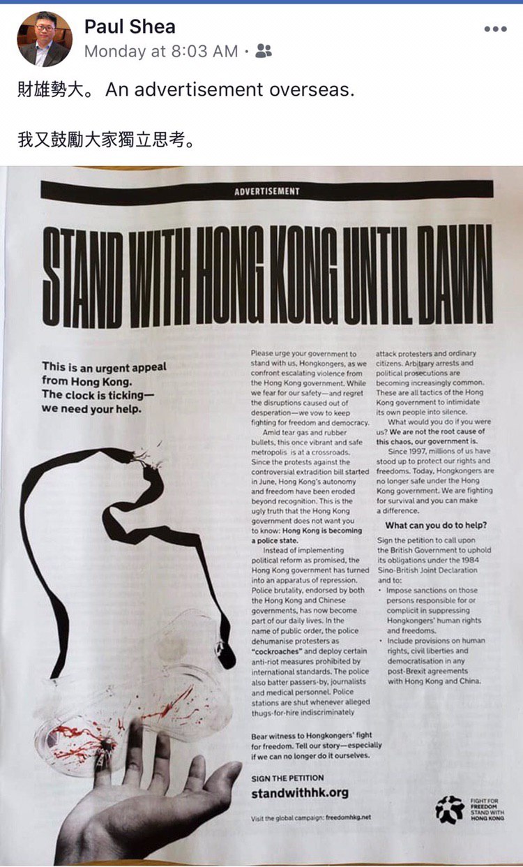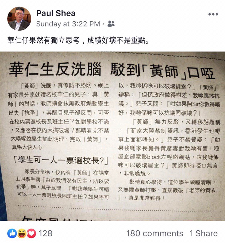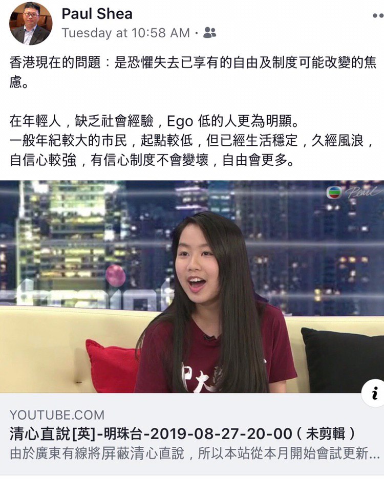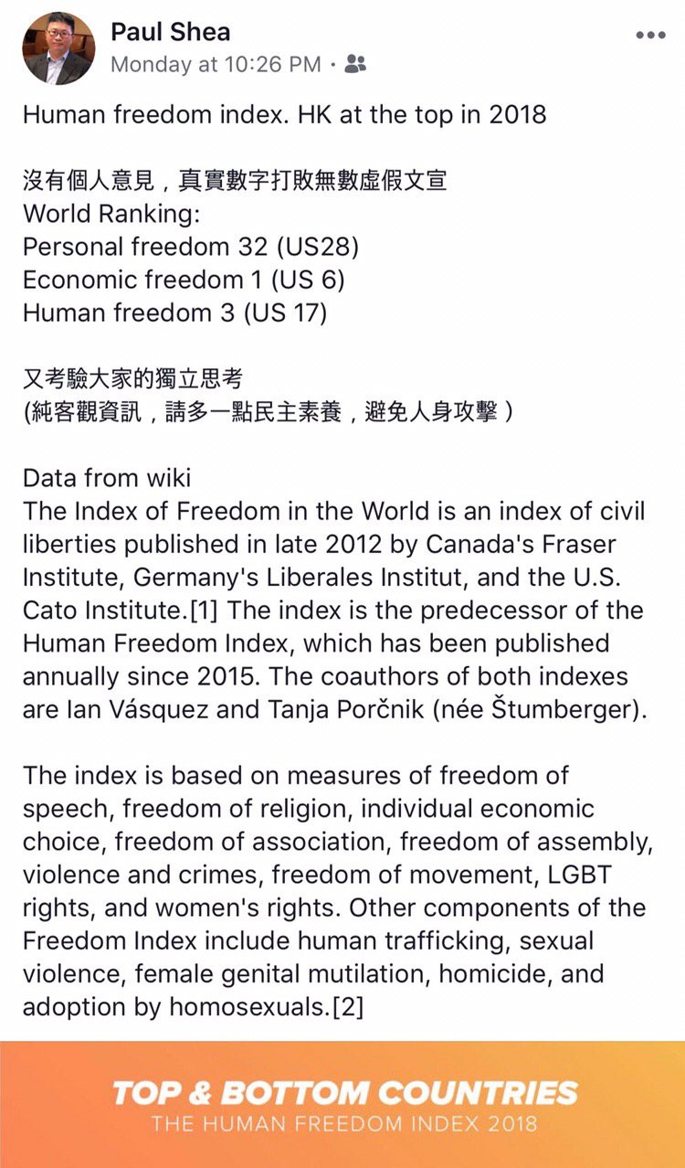 以下係佢嘅部份Facebook發文: