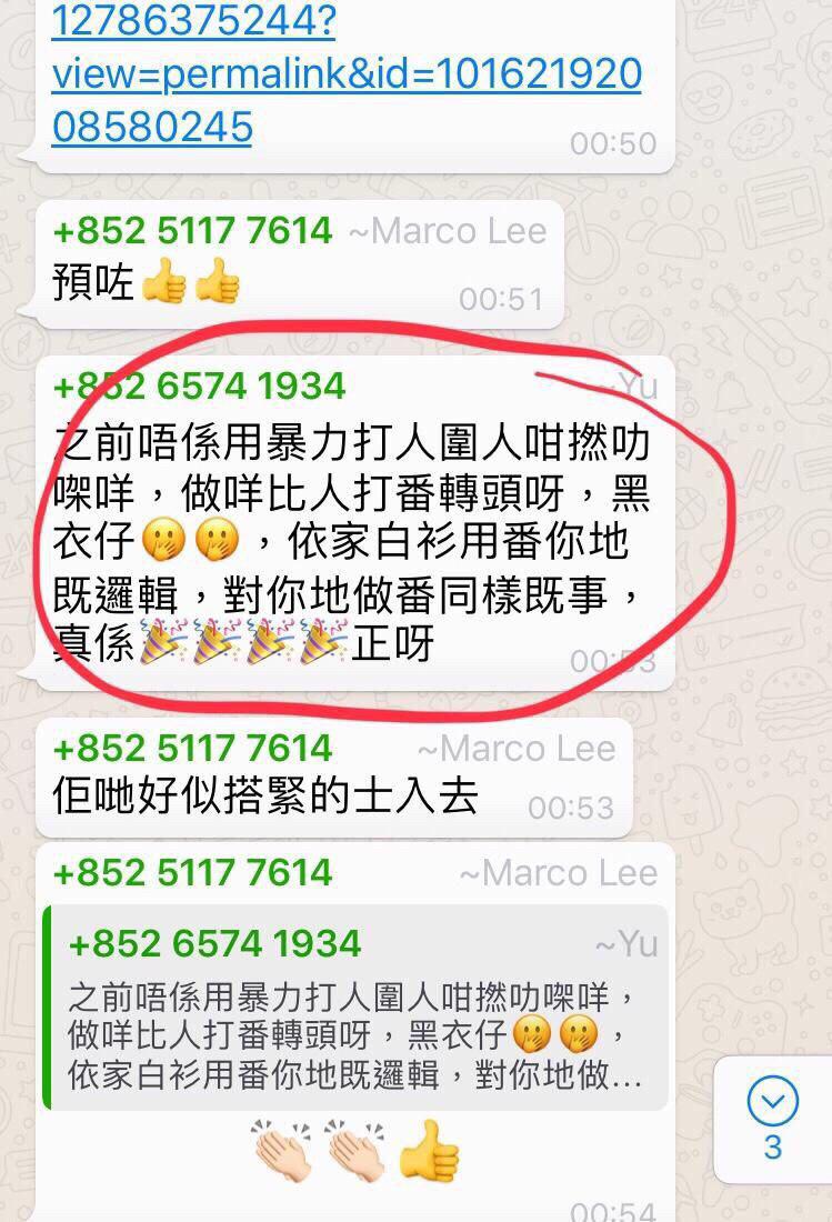 佢曾經係WhatsApp上發表支持元朗恐佈份子嘅言論。