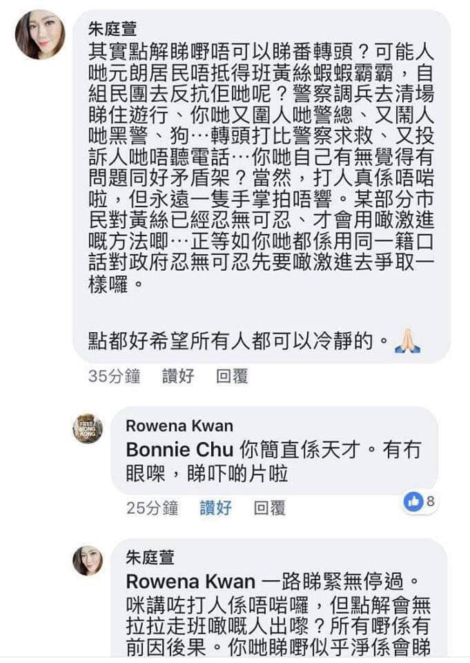 佢曾經係網上發表支持元朗恐佈份子嘅言論。