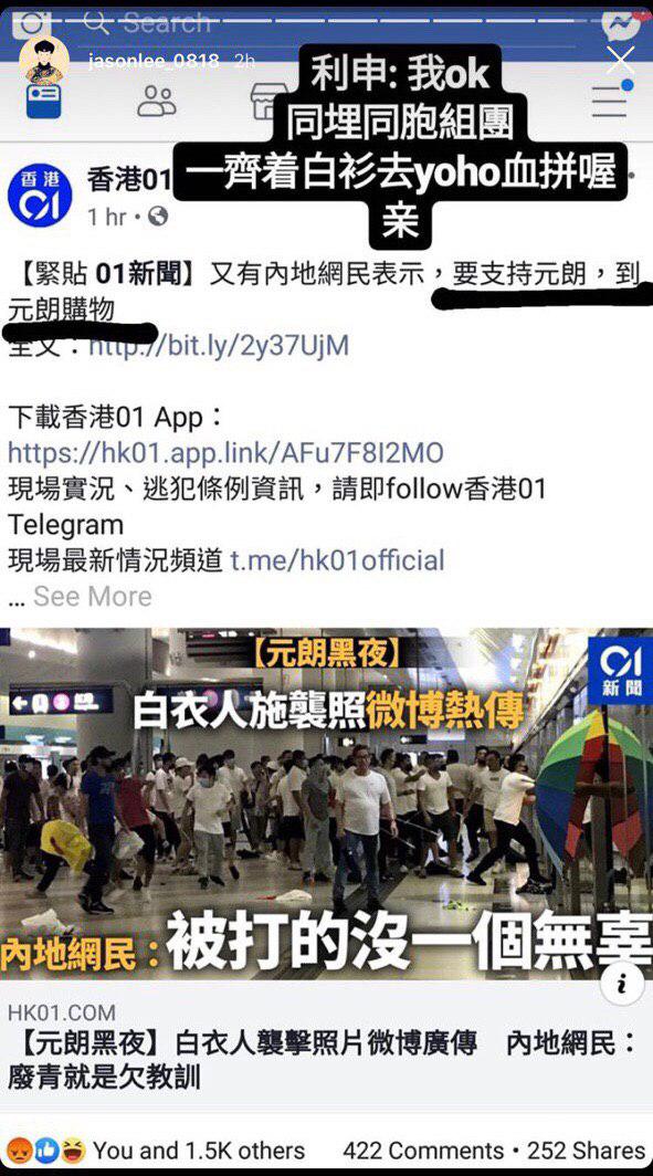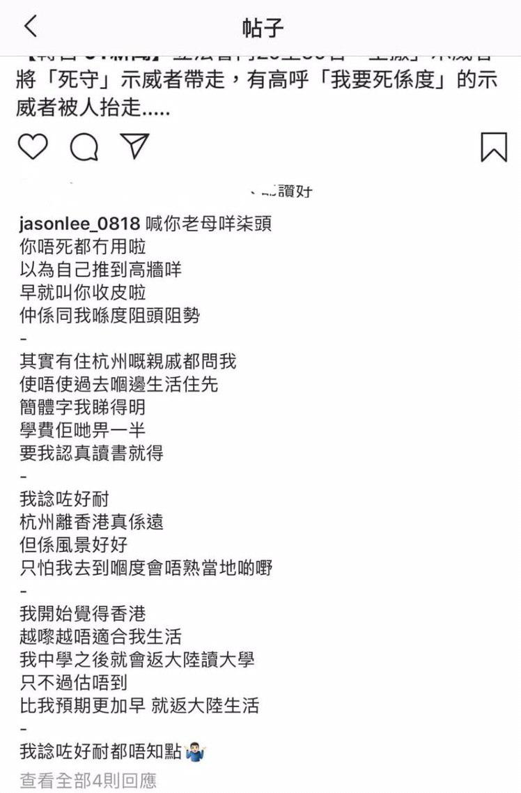 佢曾經係唔同社交網站平台,發表支持元朗恐佈份子,撐警及親中嘅言論。