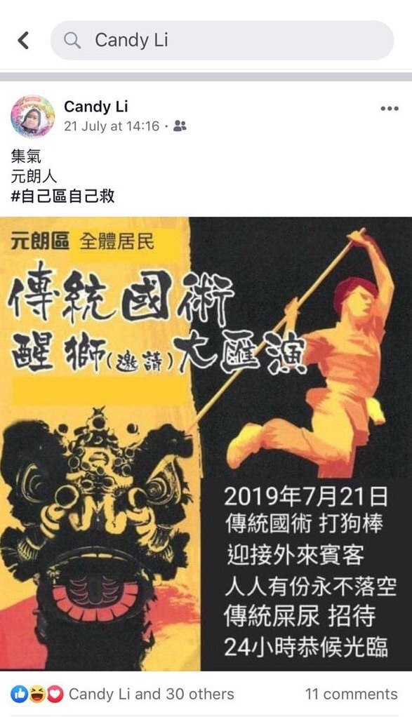 她曾在Facebook發表支持元朗恐佈襲擊的言論,詳見下圖: