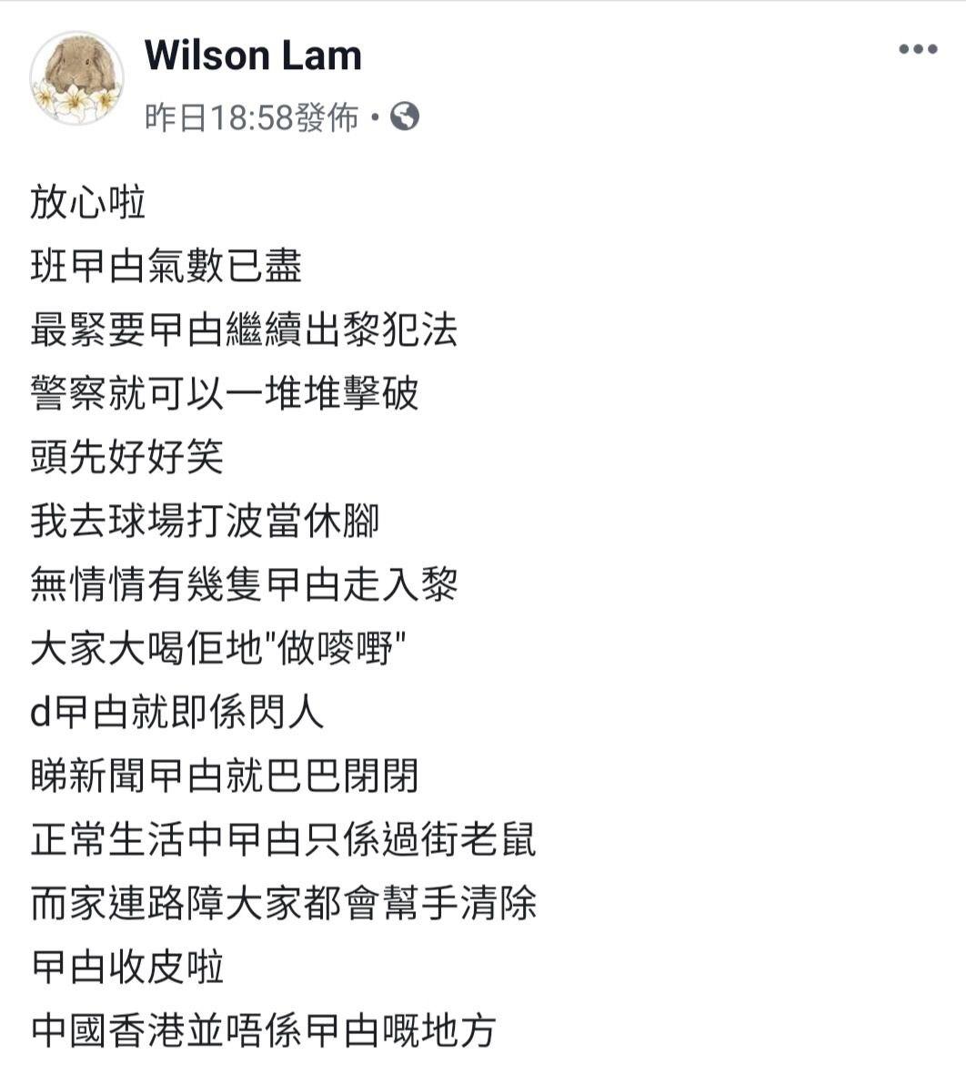 林偉成係一名撐警藍絲,支持香港警察虐待示威者。
