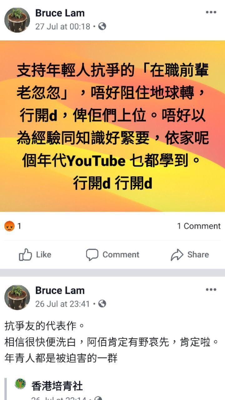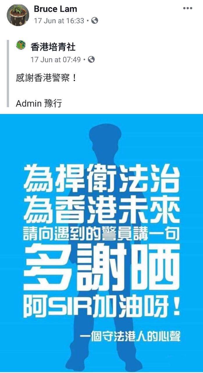 佢曾經多次係Facebook發表支持親中撐警、支持恐佈份子嘅言論。