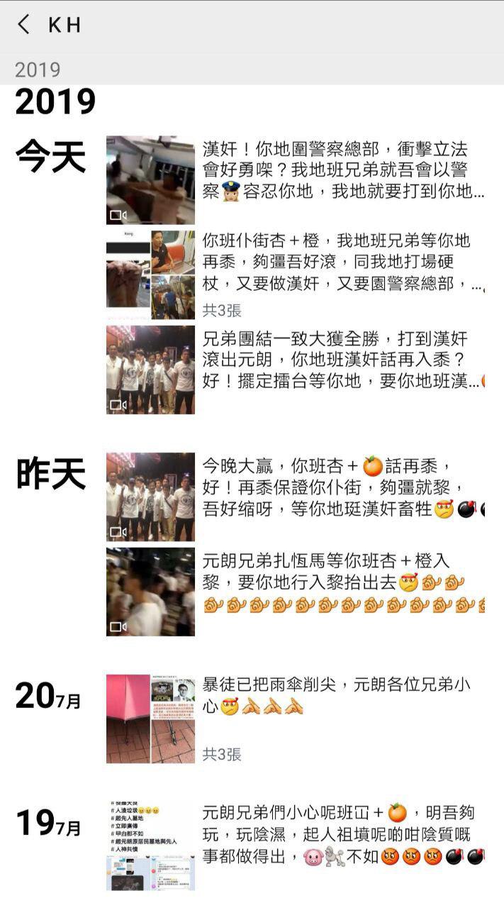 佢係黑社會14K高層成員之一,曾經係WeChat內發表支持元朗恐佈襲擊嘅言論。