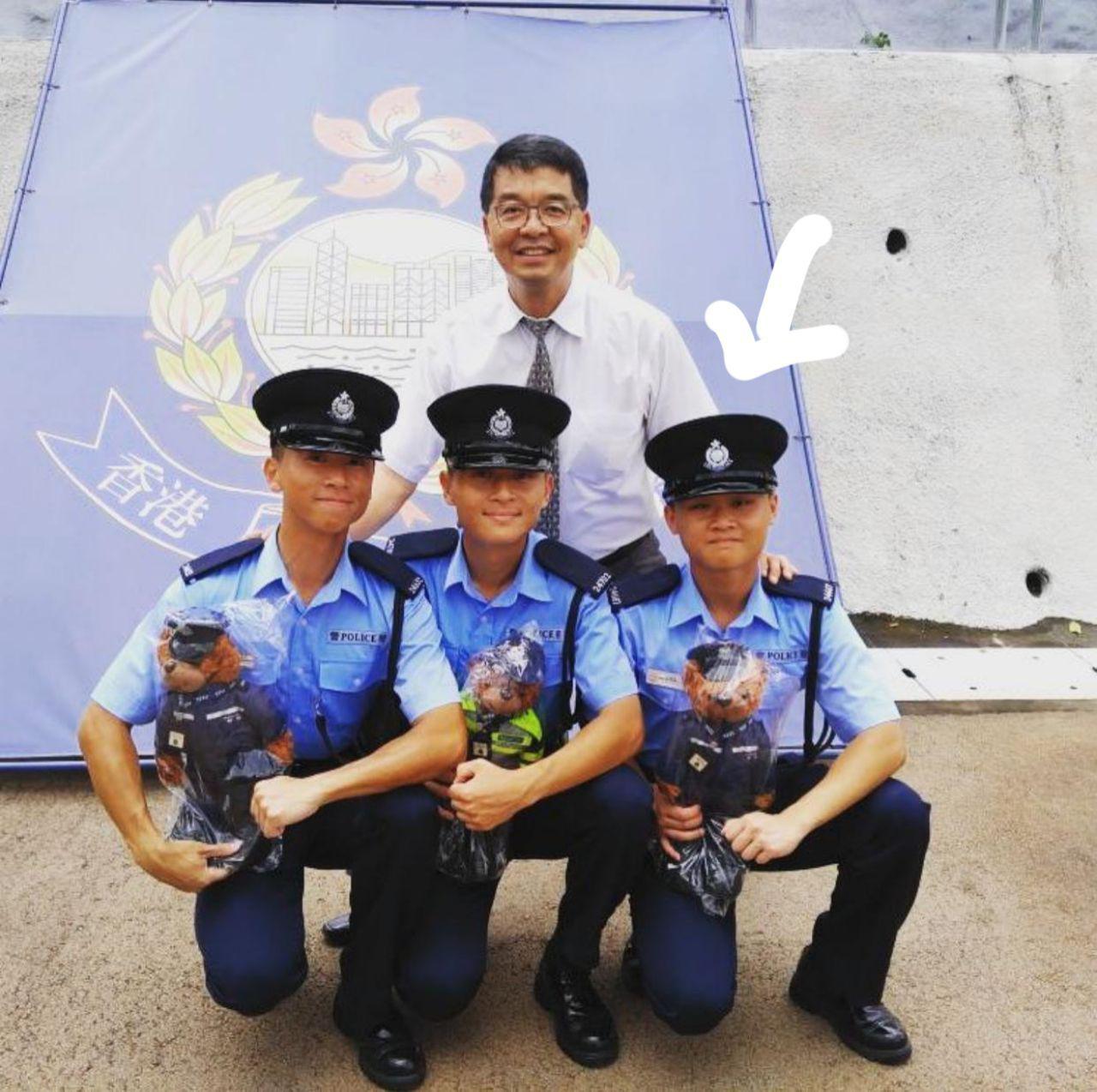 以下係佢身穿香港警察服裝時影嘅相(白圈者):