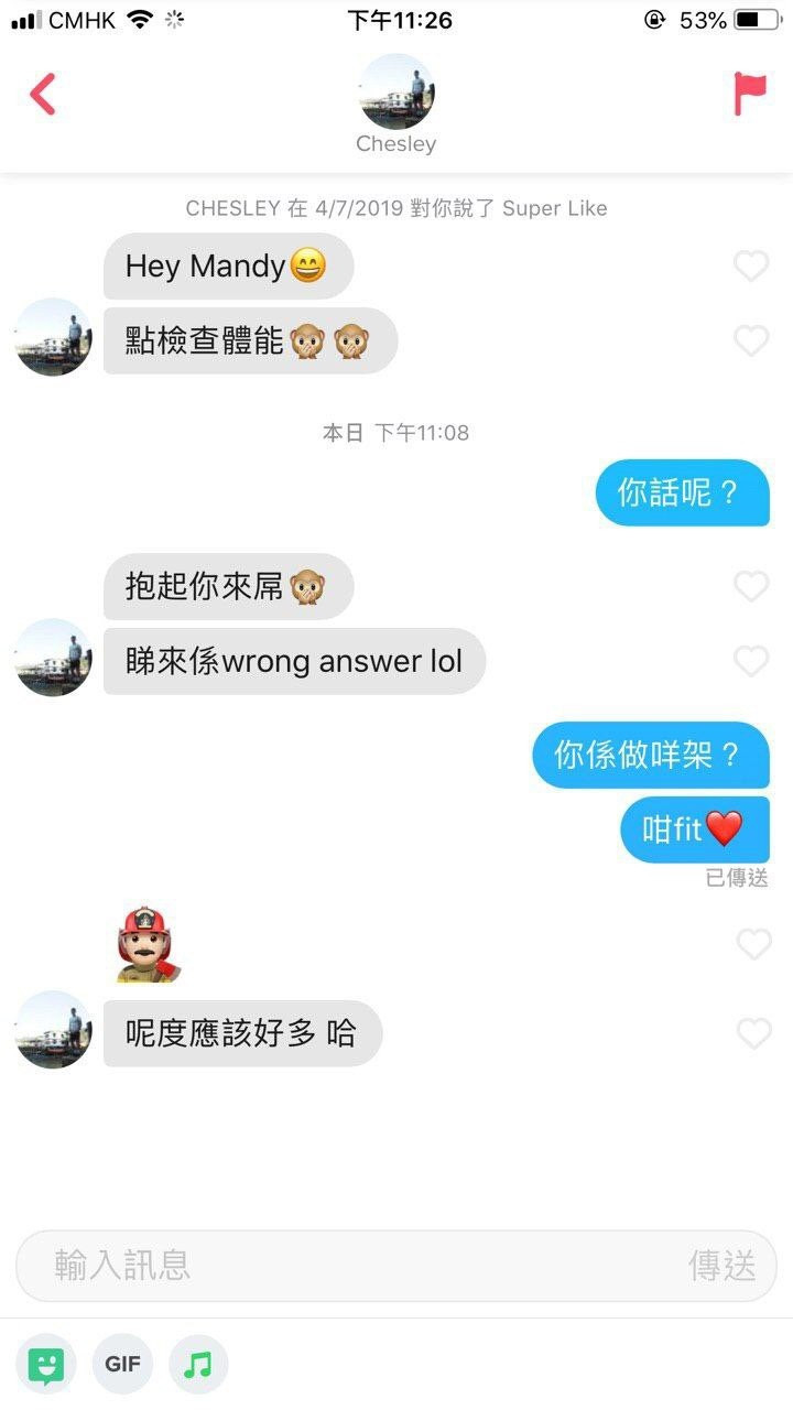 沙勇新係香港警察嘅一份子,佢曾經係Tinder上面試圖隱藏自己嘅警察身份,結識女性,及後警察身份曝光後,就聲言要帶女性入警署發生性關係,對話紀錄如下: