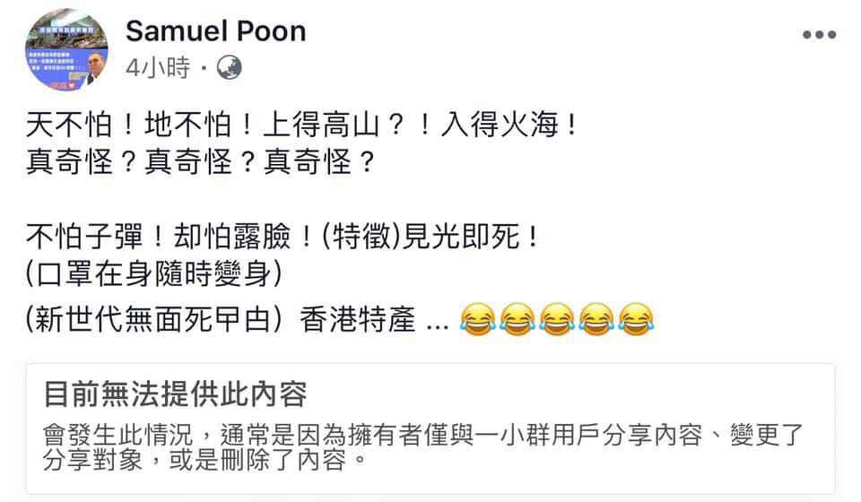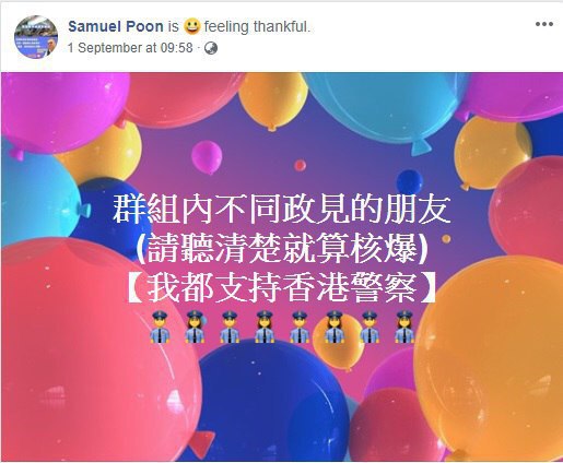 潘志標係一名撐警藍絲,支持香港警察使用暴力對待市民。