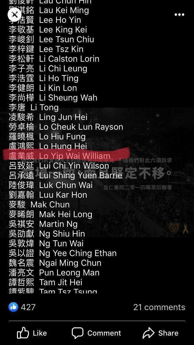 據昔日同學指出,佢係2014年曾參與當時中學聯署,譴責警察係雨傘革命中使用過份武力。