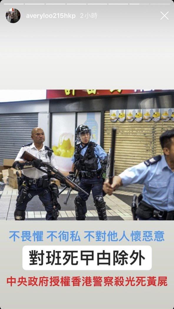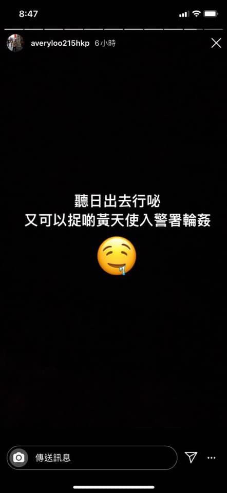 除此之外,佢亦曾經係Instagram公開表示「要殺死晒班黃絲」,以及要強姦示威者,見下圖: