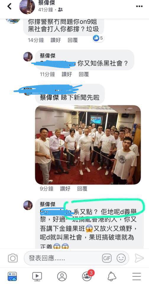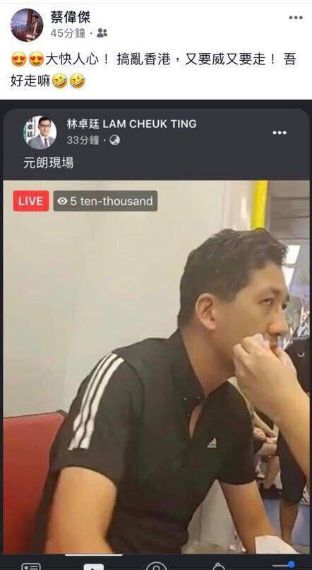 佢曾經轉發支持元朗恐佈份子嘅言論,如下圖: