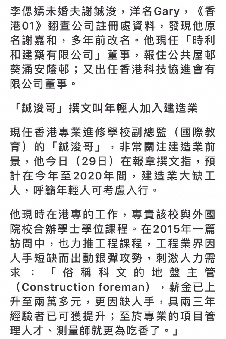 佢係知名親中、撐警人士李偲嫣個老公。