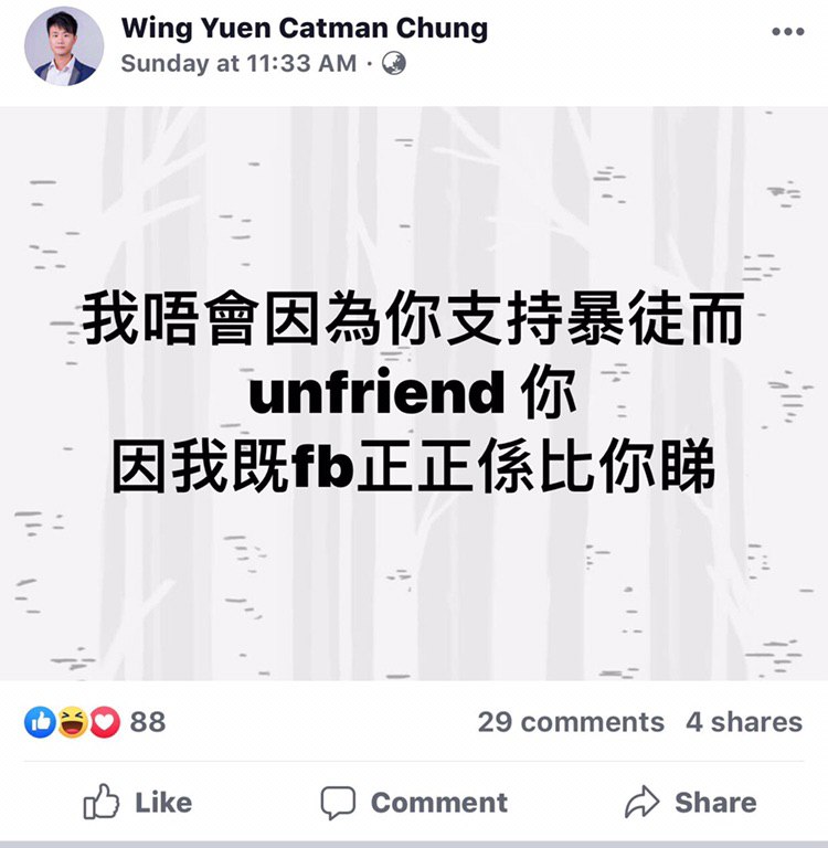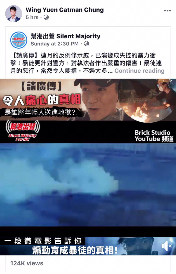 佢曾經係Facebook講自己想制止警察兒女被欺凌,分享撐警專頁嘅影片。