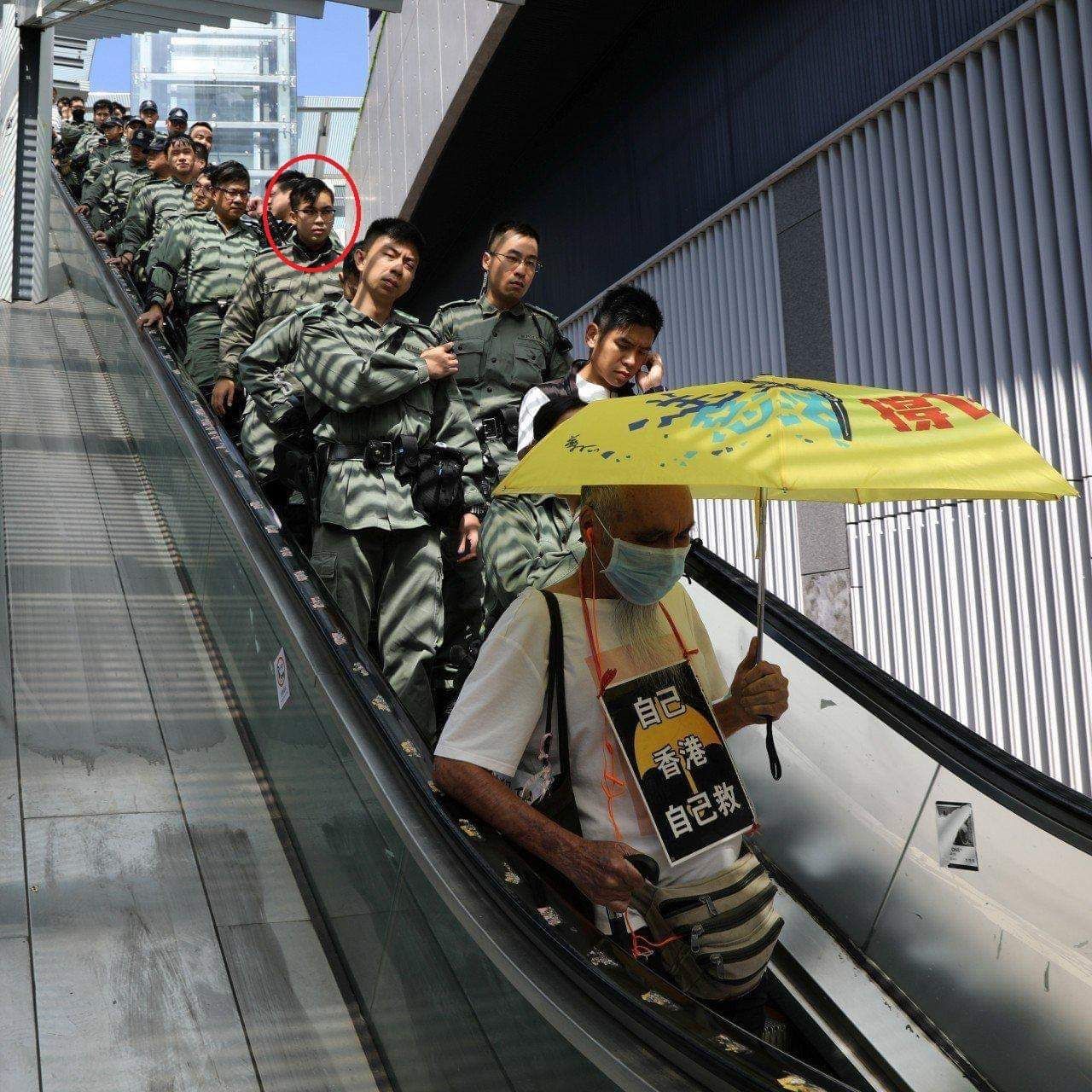 佢曾經係2019-08-24於觀塘示威中襲擊及虐待示威者,以及係2019-10-16曾經參與保護香港行政長官林鄭月娥。