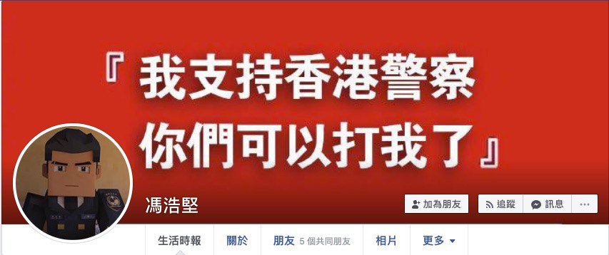 馮浩堅係一名撐警藍絲,支持香港警察使用暴力對待市民。